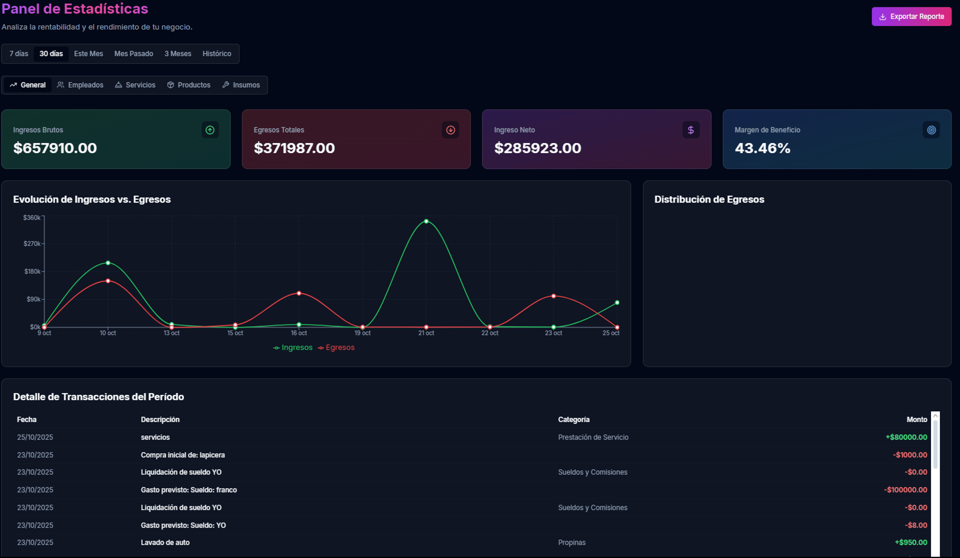 Administrá ingresos, egresos, stock y rendimiento de empleados desde un solo lugar.